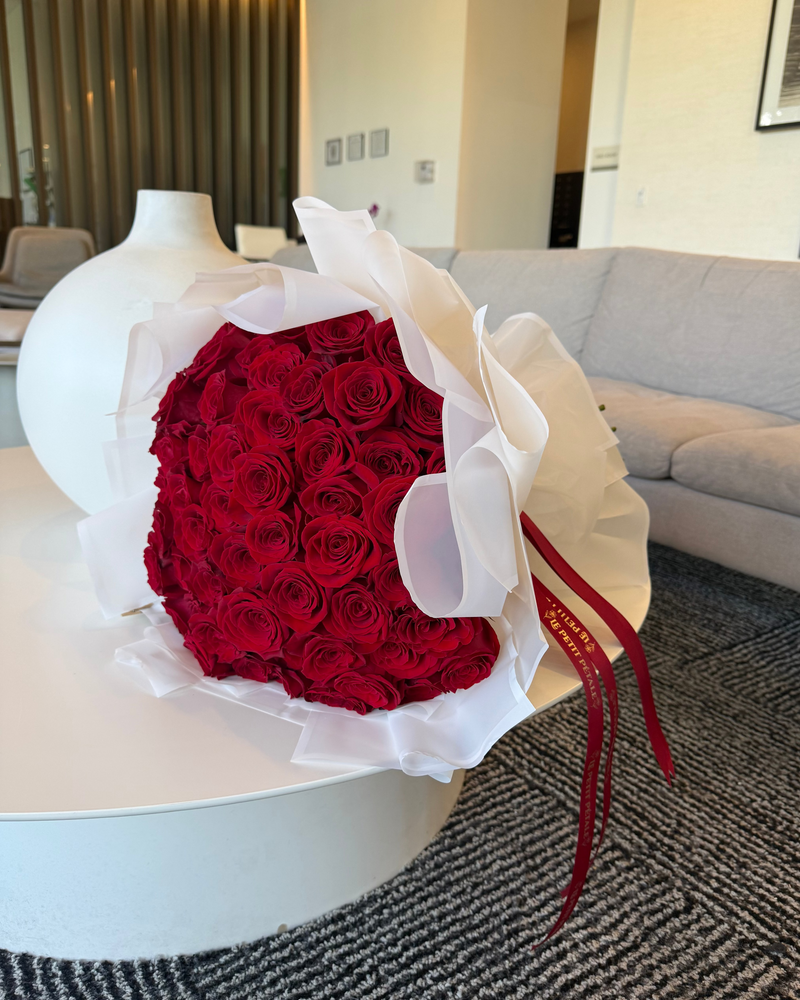 Indulge in the timeless elegance of Red Passion, our signature red rose bouquet crafted for those who love boldly. Each stem is hand-selected for its rich crimson hue, velvety petals, and exceptional freshness.